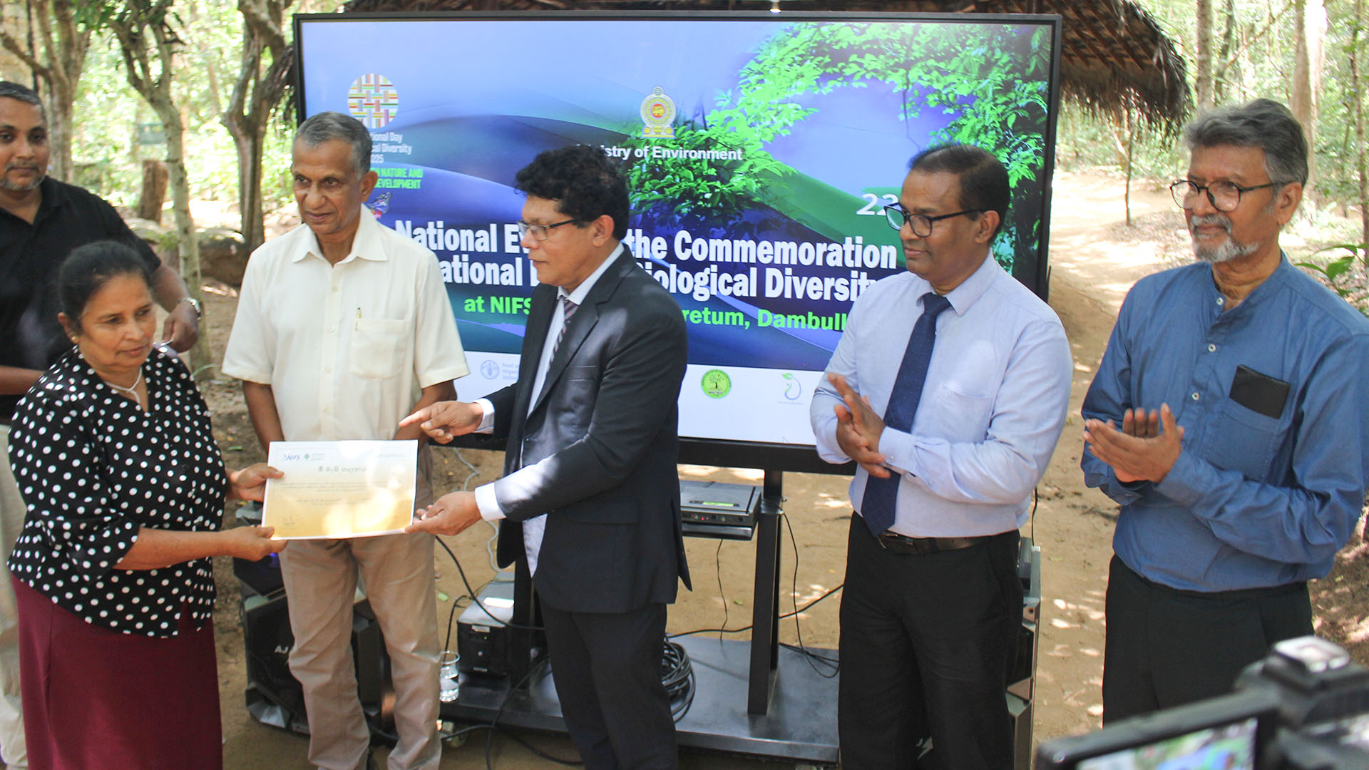 To commemorate the International Day for Biological Diversity 2025, the Biodiversity Division of the Ministry of Environment organized a celebration on 22nd May 2025 at the NIFS Popham Arboretum in Dambulla. The NIFS Popham Arboretum holds significant ecological value as a dry zone forest ecosystem. It provides a vital habitat for a wide range of biodiversity, including birds, reptiles, amphibians, mammals and more. The forest is home to approximately 100 species of timber plants, around 70 medicinal plant species, and nearly 350 plant species from 83 genera including climbers, creepers, and various endemic flora.